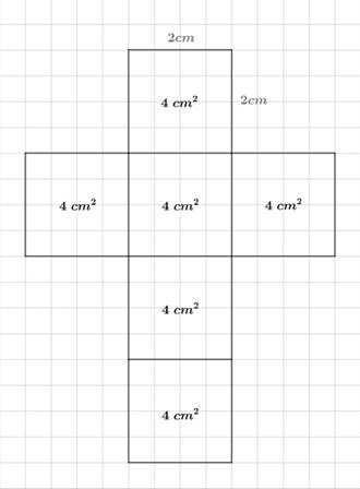 Pole całkowite: P = 6 ⋅ 4 cm2 = 24 cm2