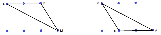 W tym zadaniu musisz narysować odpowiednie trójkąty przystające do trójkąta MAK.