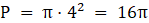 Koło o środku C: r = 4 cm, P = 16π