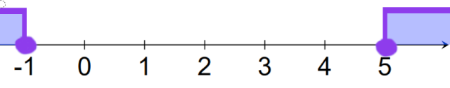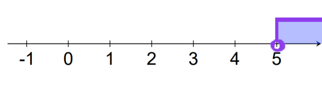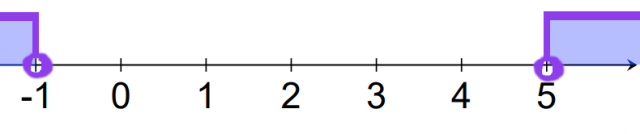 Który z rysunków jest równoważny obszarowi, gdzie odległość od liczby 2 jest większa od 3 lub równa 3.