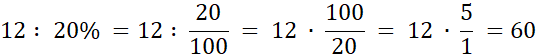 Żeby obliczyć liczbę, jeśli znamy jej procent, najpierw zamieniamy procent na ułamek. Procent to ułamek, który w liczniku ma liczbę procent, a w mianowniku liczbę 100. Następnie dzielimy liczbę przez powstały ułamek.