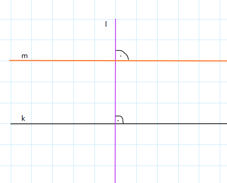 Narysuj trzy proste k, l, m tak, aby l ⊥ k i m ⊥ l.