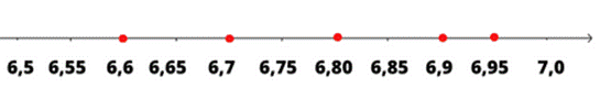 Liczby mniejsze od 7, a większe od 6,5 to np.: