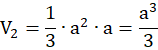 Bryła 2: Podstawą ostrosłupa jest bok sześcianu o długości a, natomiast jego wysokość to krawędź wspólna ścian bocznych utworzonych z trójkątów prostokątnych równoramiennych o przyprostokątnych równych a: