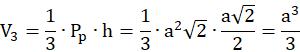 Bryła 1: Podstawą ostrosłupa jest kwadrat o boku a, natomiast wysokość jest równa wysokości sześcianu, czyli również a.