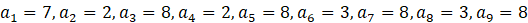 Pierwszy wyraz ciągu zapisz jako pierwszą cyfrę numeru, drugi wyraz ciągu tak samo, analogicznie do dziewiątego wyrazu.