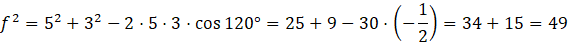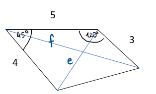 Oblicz długości przekątnych korzystając z twierdzenia cosinusów.
