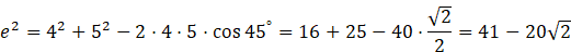 Długości przekątnych obliczam za pomocą twierdzenia cosinusów: