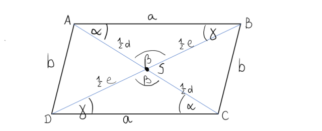 Narysuj dany równoległobok, zaznacz równe odcinki, które powstały poprzez przecięcie się przekątnych. Zauważ, że trójkąty ABS i CDS są przystające, zatem długości boków AB i CD oraz AD i BC są sobie równe. Co oznacza, że czworokąt jest równoległobokiem.