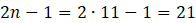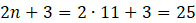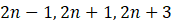 Przedstawieniem powolnej liczby nieparzystej jest liczba postaci 2n + 1, poprzedniej nieparzystej liczby 2n – 1, a kolejnej 2n + 3, gdzie n jest liczbą naturalną dodatnią. Ułóż równanie opisujące warunek z zadania. Wymnóż nawiasy za pomocą wzorów skróconego mnożeni, następnie zredukuj jednomiany podobne. Oblicz wyróżnik równania, a następnie jego rozwiązania (pamiętając, by sprawdzić, czy należą do dziedziny). Jako odpowiedź podaj trzy liczby.