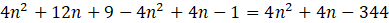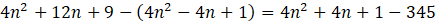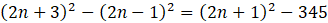W tym zadaniu musisz znaleźć takie trzy kolejne liczby nieparzyste, dla których różnica kwadratów największej i najmniejszej z nich jest o 345 mniejsza od kwadratu środkowej liczby.