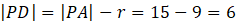 D – punkt przecięcia prostej i okręgu znajdujący się bliżej punktu P