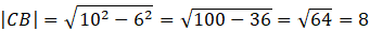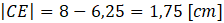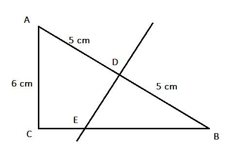 Długość boku CB oblicz, korzystając z twierdzenia Pitagorasa. Następnie zauważ, że trójkąty EDB i ACD są podobne na mocy cechy kąt – kąt – kąt. Dzięki temu możesz zapisać stosunki długości odpowiednich boków trójkątów. Wiesz również, że |BE| jest równa połowie długości przeciwprostokątnej. Zapisz stosunki długości odpowiadających sobie boków w trójkątach podobnych otrzymując równanie, z którego możesz wyznaczyć |BE|. Aby obliczyć długość CE, wystarczy od długości CB odjąć długość BE.