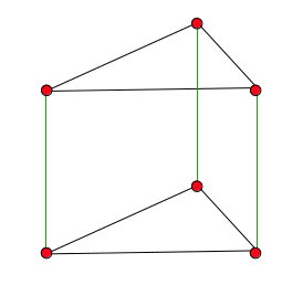 Narysuj graniastosłup o trójkątnej podstawie i pokoloruj jego wierzchołki na czerwono, a jego krawędzie boczne na zielono.