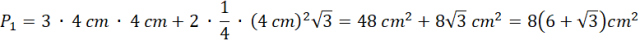 Pole powierzchni graniastosłupa prawidłowego trójkątnego o wszystkich krawędziach długości 4 cm jest równe . P