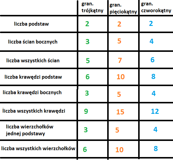 Wzór na liczbę ścian, ścian bocznych, wierzchołków i krawędzi graniastosłupa.