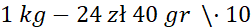 Aby obliczyć cenę, najlepiej zrobić to na proporcjach. Podobnie jak ze skalą, zapisujemy po jednej stronie wagę, a po drugiej cenę za tą wagę. Jeśli mnożymy lub dzielimy przez jakąś liczbę jedną stronę, to samo działanie wykonujemy na drugiej. Pamiętaj o zamianie jednostek.