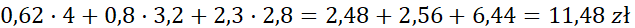 Oblicz cenę za zakupy chłopca.