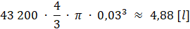 Oblicz ilość kropli, jaka wycieknie w tym czasie i pomnóż wynik przez objętość jednej kropli: