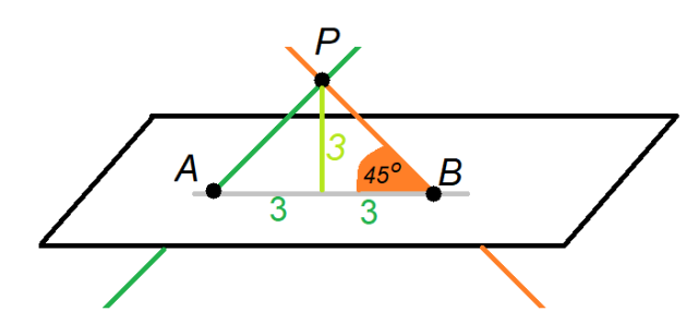 Jeśli są one nachylone pod kątem 45º to znaczy, że zaznaczone odcinki są równe, a odległość między punktami to 6 cm.