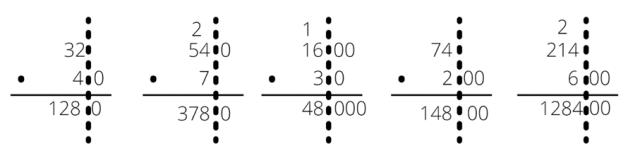 W sposobie chodzi o to, aby przed przerywaną linią zapisać mnożenie liczb różnych od zera. Poza kreską zapisz zera. Następnie sumę zer przepisz pod kreskę.