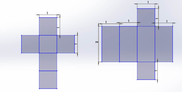Siatka sześcianu składa się z 6 kwadratów. Siatka prostopadłościanu zawiera dwie takie same podstawy i dwie pary boków.