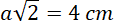Przekątna ściany sześcianu ma długość 4 cm, możesz policzyć długość krawędzi: