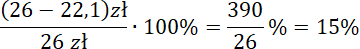 Oblicz, o ile procent różni się cena aktualna od ceny przed obniżką: