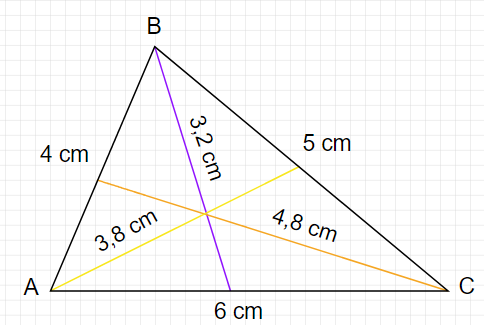 Bok AC ma 6 cm, a wysokość opuszczona na ten bok ma 3,2 cm.