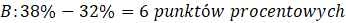 Oblicz, ile wynosiła zmiana poparcia dla obu partii w punktach procentowych i w procentach.