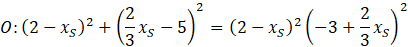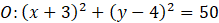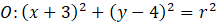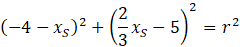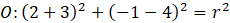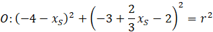 do równania okręgu i porównujemy. Po wyliczeniu środka okręgu, wyliczamy „
