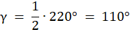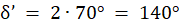 δ’ – kąt środkowy oparty na tym samym łuku, co kąt o mierze 70°