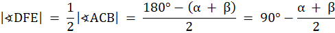 W tym zadaniu oblicz miarę kąta wpisanego opartego na łuku zawartym w trójkącie, wiedząc, że okrąg o środku w jednym z wierzchołków trójkąta przecina dwa jego boki wychodzące z tego wierzchołka, a kąty przy pozostałych dwóch wierzchołkach trójkąta ma miary α i β.