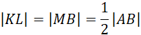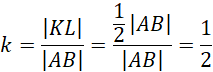 W trójkąt prostokątny ABC wpisano trójkąt KLM, podobny do trójkąta ABC tak, że odpowiednie boki tych trójkątów są równoległe. Skala podobieństwa trójkąta KLM do trójkąta ABC jest równa: