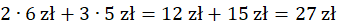 Z wykresu odczytaj, jaka jest cena wynajmu kajaku na dwie godziny i jaka jest cena wynajmu kajaku na 3 godziny. Następnie ceny te pomnóż przez ilość wynajmowanych kajaków oraz oblicz sumę tego wynajmu.
