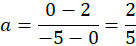 Oblicz współczynnik kierunkowy prostej poprzez podłożenie współrzędnych dwóch dowolnych punktów, np. punktów przecięcia osi OX i OY, do wzoru: