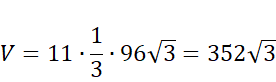 Oblicz objętość ostrosłupa prawidłowego sześciokątnego o wysokości równej 11, wysokości ściany bocznej 13 i krawędzi podstawy 8.
