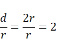 Średnica koła jest C / D razy dłuższa od promienia r tego koła.