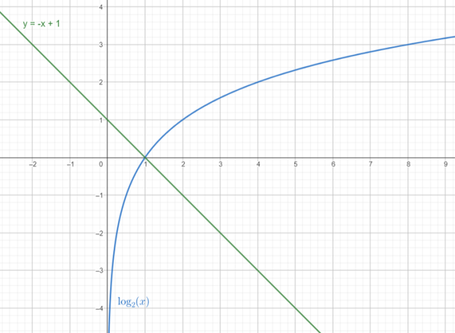 Zauważ, że funkcje te przecinają się w jednym miejscu, więc mają jeden punkt wspólny.