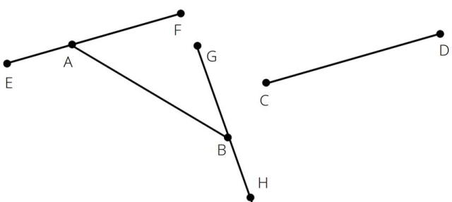Narysuj odcinek równoległy do CD przechodzący przez punkt A oraz odcinek prostopadły do odcinka CD przechodzący przez punkt B.