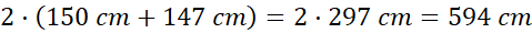 Oblicz obwód równoległoboku, którego jeden bok ma długość 15 dm, a drugi jest o 3 cm krótszy.