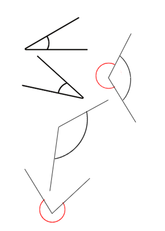 Kąty ostre mają mniej niż 90 stopni, rozwarte, powyżej 90, ale mniej niż 180 stopni. Natomiast wklęsłe mają więcej niż 180, ale mniej niż 360. Na jednym obrazku możemy zaznaczyć dwa kąty.