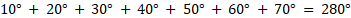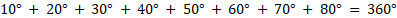 Koło zostało podzielone na wiele wycinków, zaczynając od najmniejszego, który jest wyznaczony przez kąt środkowy o mierze 10°. Każdy kolejny wycinek ma kąt środkowy o mierze większej o 10° niż poprzedni. Jaką miarę będzie mieć kąt środkowy wyznaczający wycinek o największym polu?