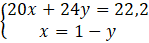 20(1 – y) + 24y = 22,2