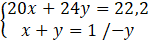 20 – 20y + 24y = 22,2 /-20