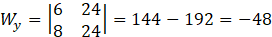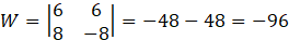 Jednym ze sposobów rozwiązania układu jest wyznaczenie x i y metodą wyznaczników. Znajdź wyznacznik główny układu, a następnie wyznaczniki