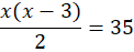 Aby uzyskać wzór na liczbę boków wielokąta o 35 przekątnych oznacz jako x liczbę boków i wstaw w miejsce n. Otrzymany ułamek przyrównaj do 35: