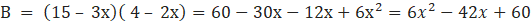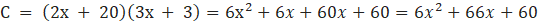 A = (6x – 12)(x – 5), B = (15 – 3x)( 4 – 2x), C = (2x + 20)(3x + 3)