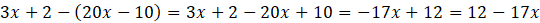 Wyrażenie 4x – 2 pomnożono razy 5, a otrzymany wynik został odjęty od wyrażenia 3x + 2. Końcowy wynik możemy zapisać jako