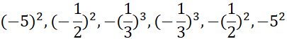 Zwróć uwagę, że gdy wykładnik liczby ujemnej jest liczbą parzystą, to jej potęga jest dodatnia, natomiast gdy wykładnik jest liczbą nieparzystą, to jej potęga jest ujemna.